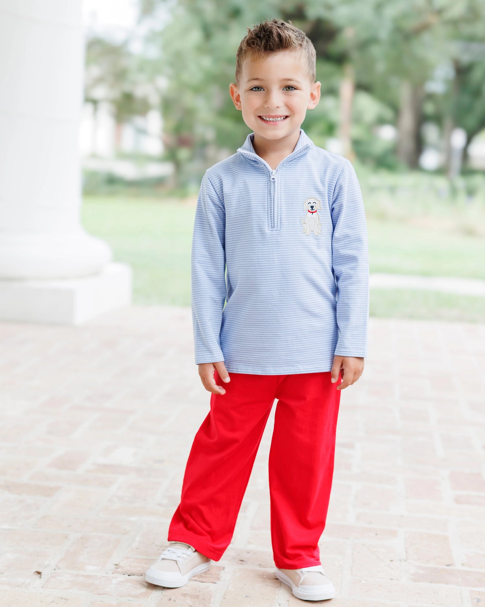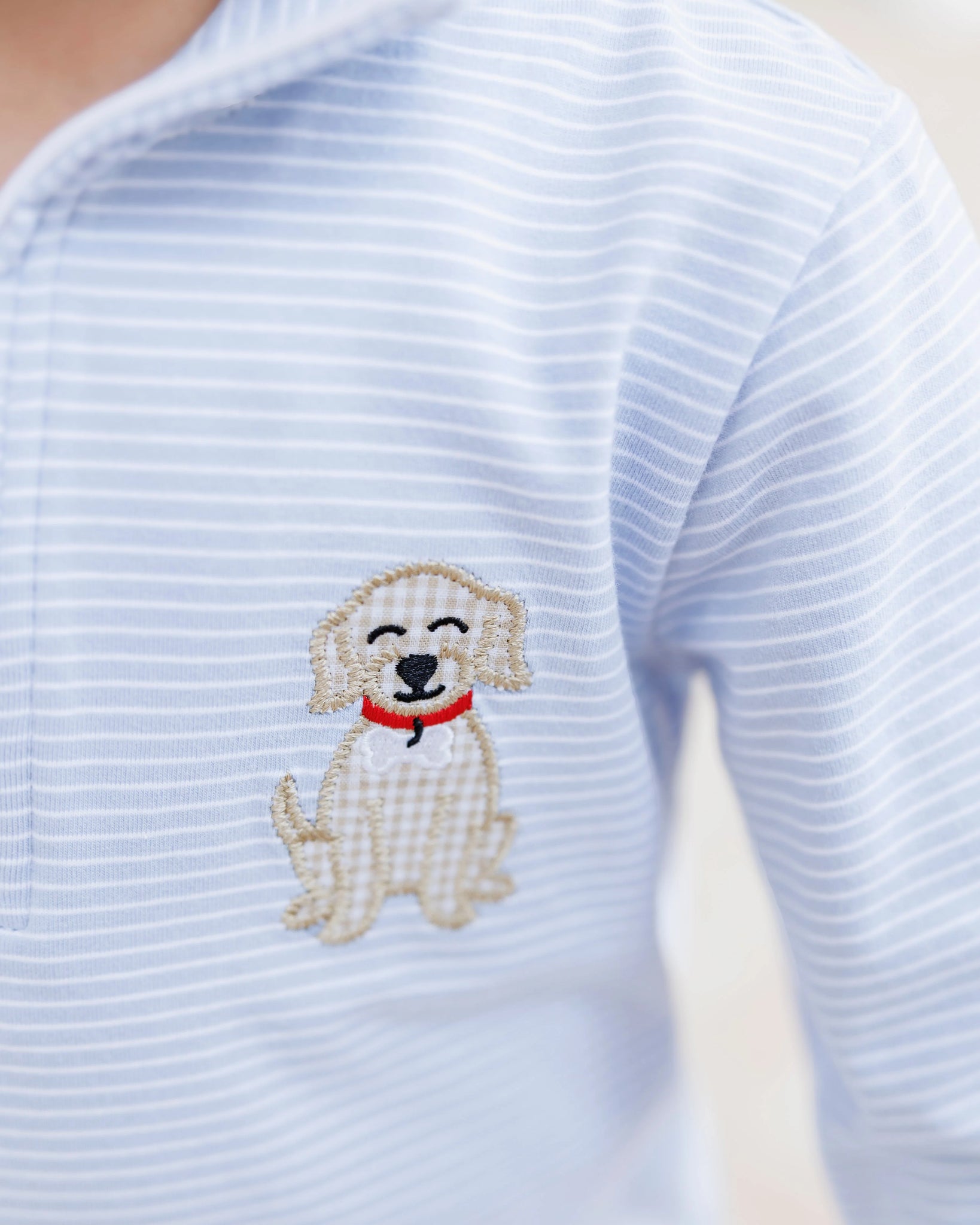 Cozy up this fall with our adorable My Best Friend Pullover! This playful striped 1/4 zip features an irresistible small dog applique that's sure to fetch compliments wherever you go. Perfect for chilly autumn days when you need a faithful companion to keep you warm and stylish.
